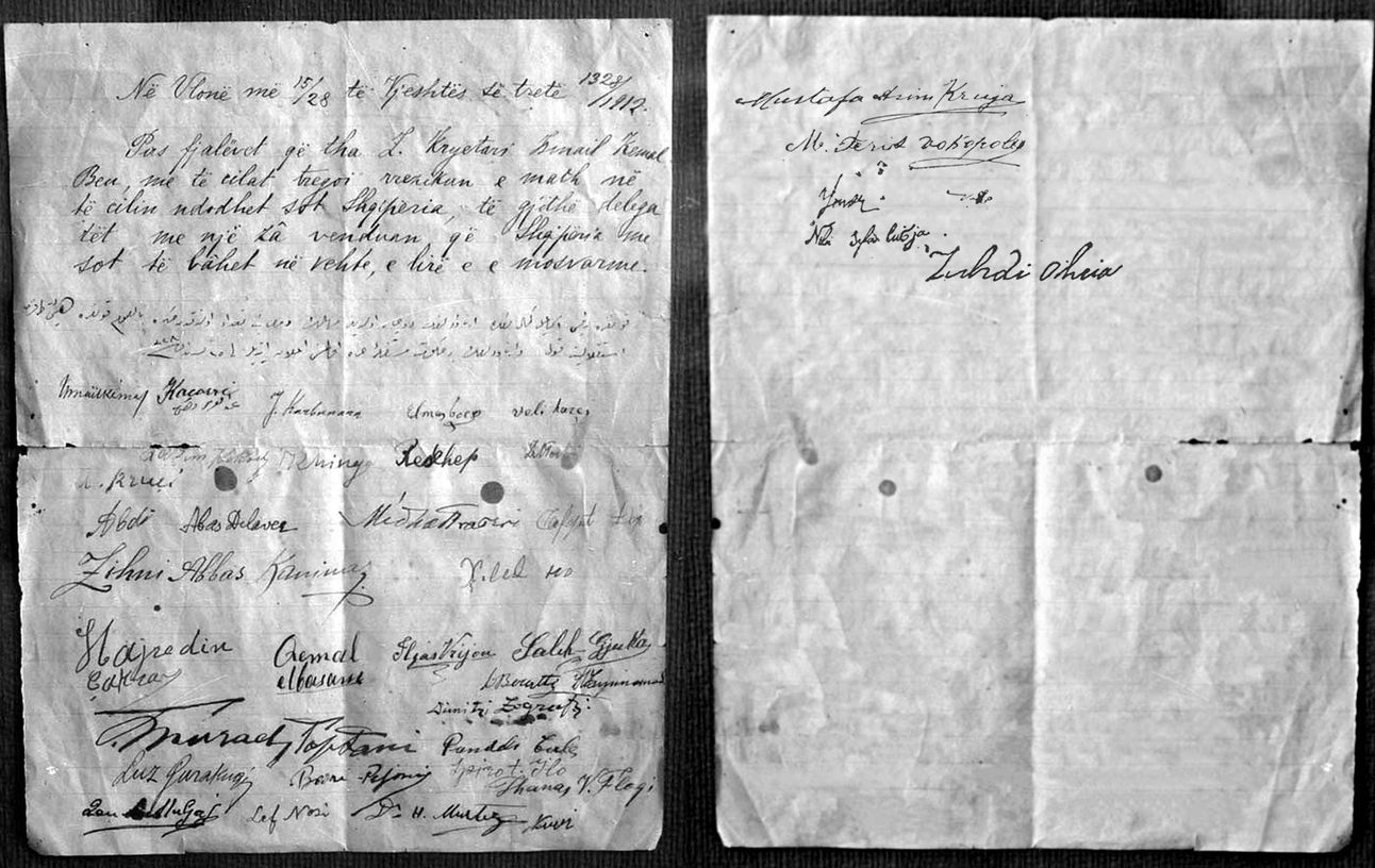 Photomontage of the original Act of the Albanian Declaration of Independence.